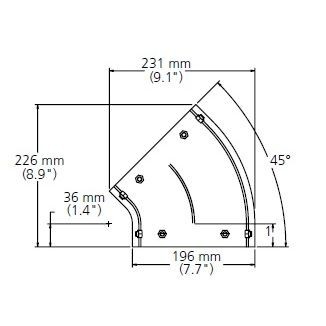 Bogen 45° horizontal, 50x150mm, 2x6 System
