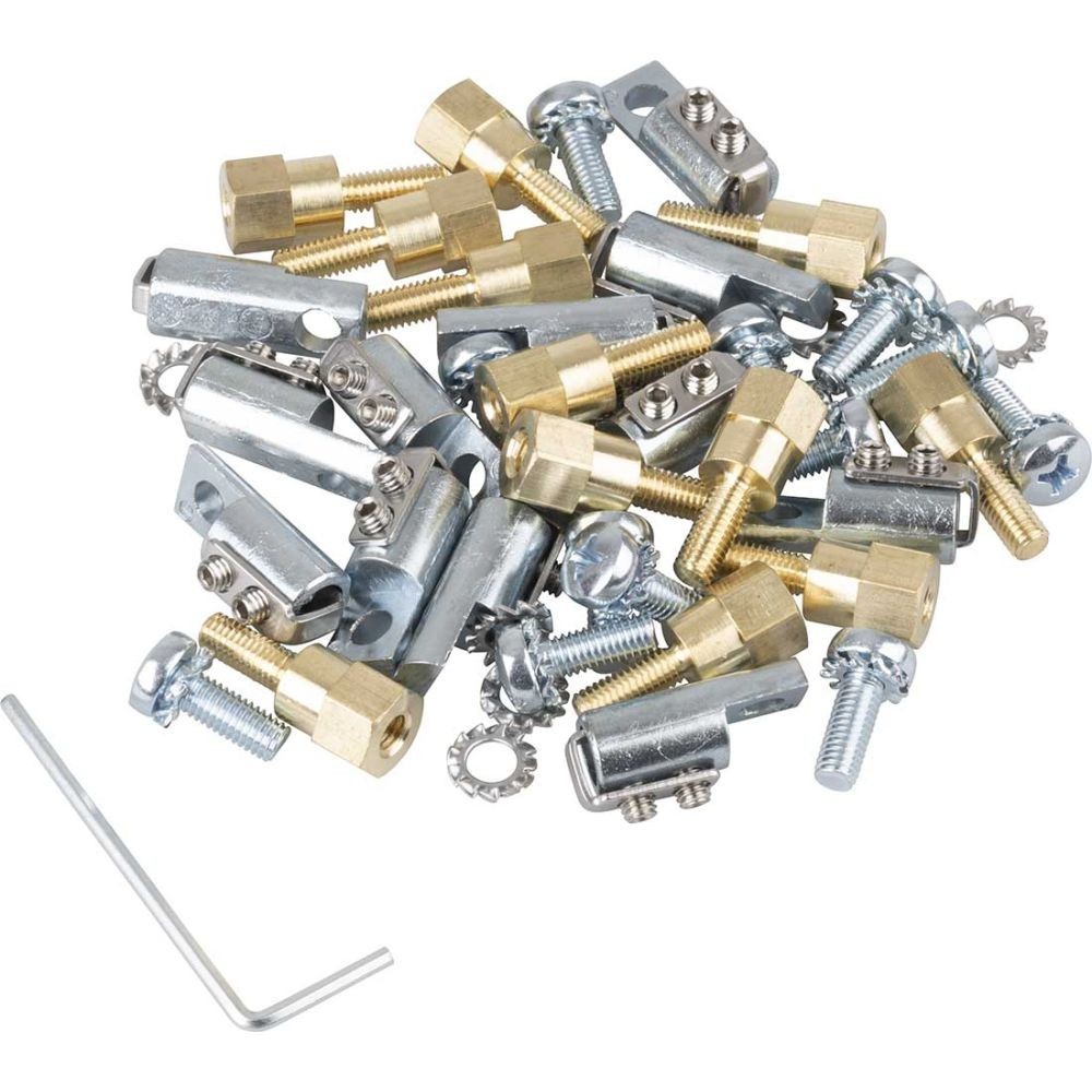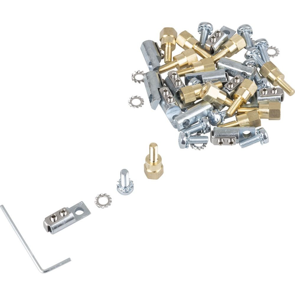 Der Bausatz enthält 12 Zugabfangungen und Distanzstücke für Zentralelemente und einen Inbusschlüssel.